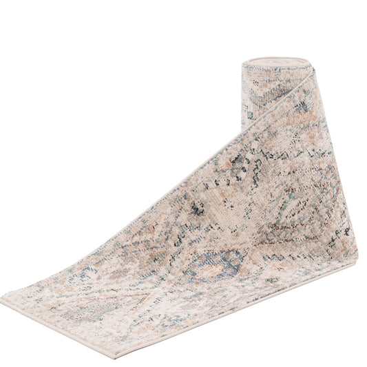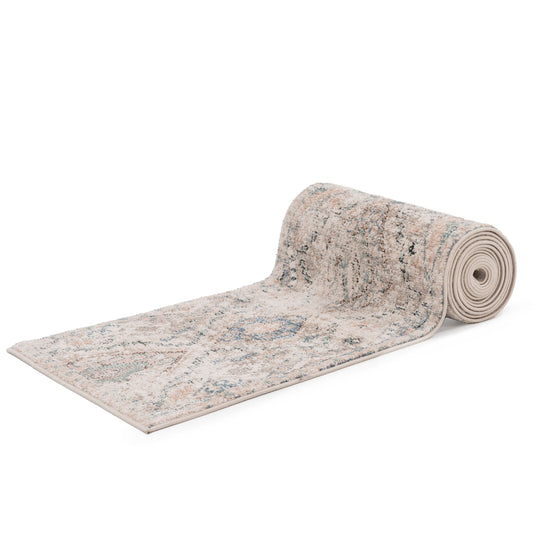 Beige Bordered Stair Carpet Runner - Cut to Measure