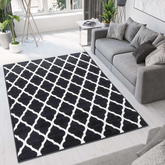 Black Moroccan Trellis Living Room Rug