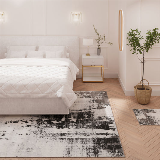 Distressed Abstract Grey Black Area Rug - Grace