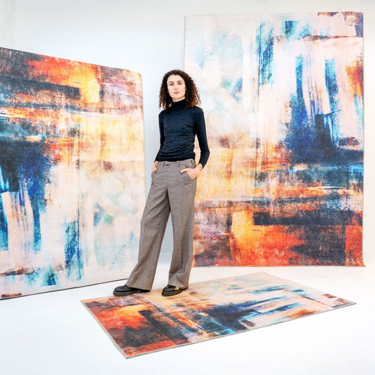 Blue Terracotta Abstract Canvas Area Rug - Rebel