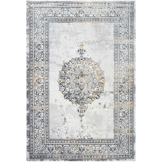 Grey White Textured Floral Rug