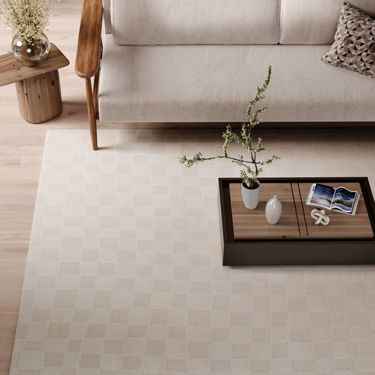 Warm White Tufted Diamond Rug - Elino