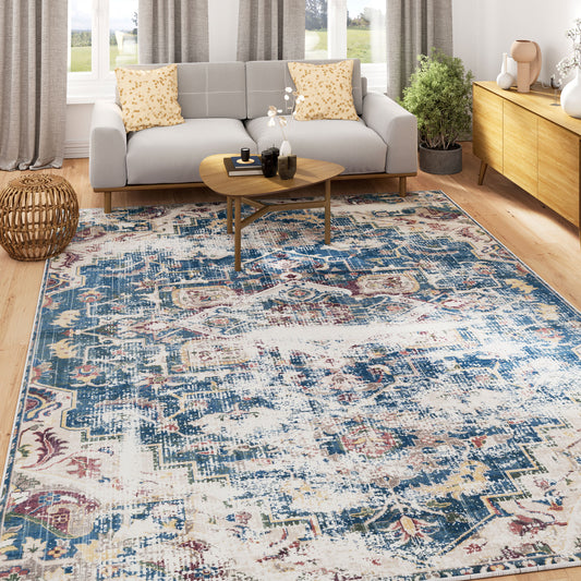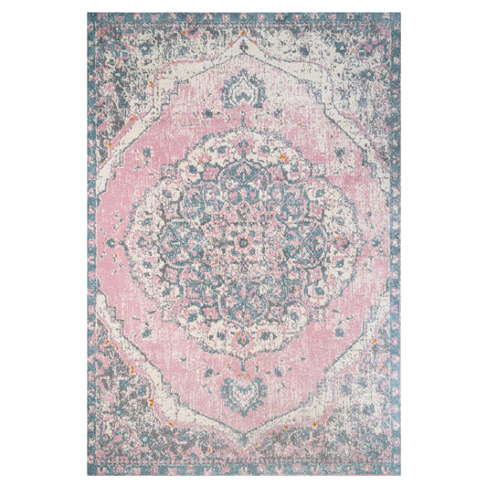 Ornate Soft Grey Distressed Medallion Living Room Rug - Meredith