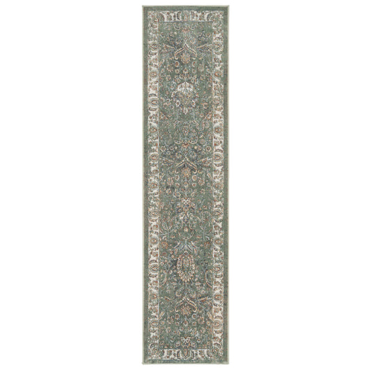 Flatwoven Washable Distressed Green Medallion Rug - Lottie