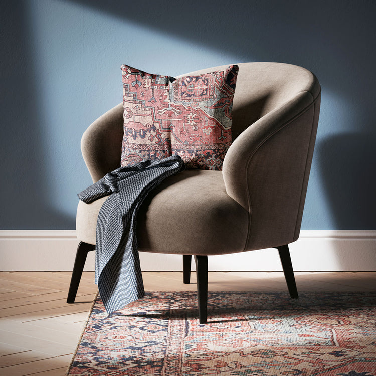 When the colours, patterns, and textures of our Flatwoven Washable rugs and cushions blend seamlessly, they create visual harmony that makes your room feel balanced and inviting. This traditional Kashan inspired rug design allows us a glimpse into the past