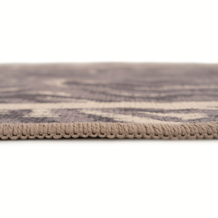 Gabby Zebra softens the wild with a tonal grey zebra pattern, elevated by gentle cream highlights and a simple cream border. It’s a modern twist on animal print calm, curated and quietly confident. Woven from recycled cotton and polyester with a non-slip backing and liquid repellent surface, style and practicality walk hand in hand.