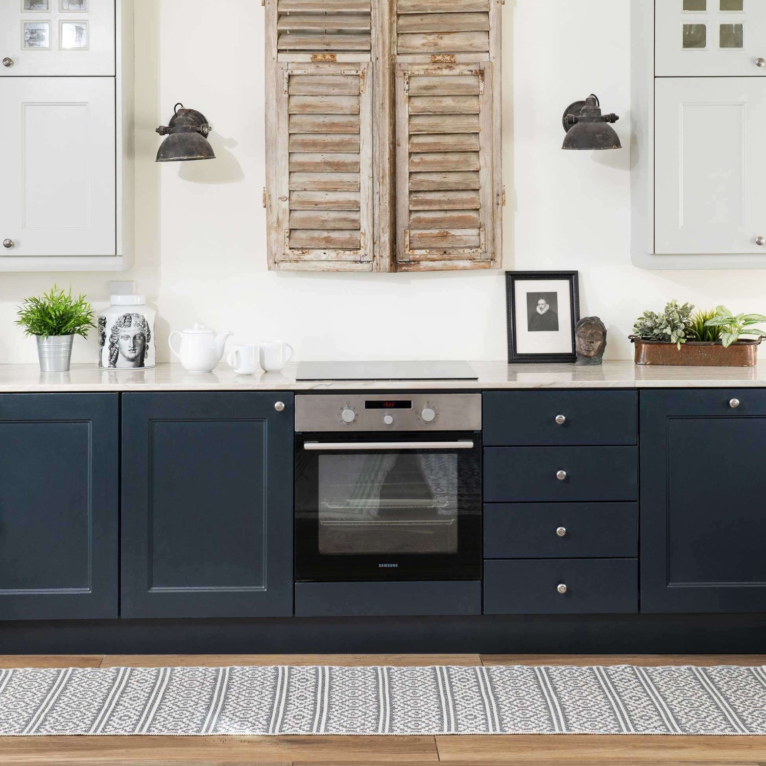 Reversible Recycled Cotton Grey Aztec Motif Rug - Sian