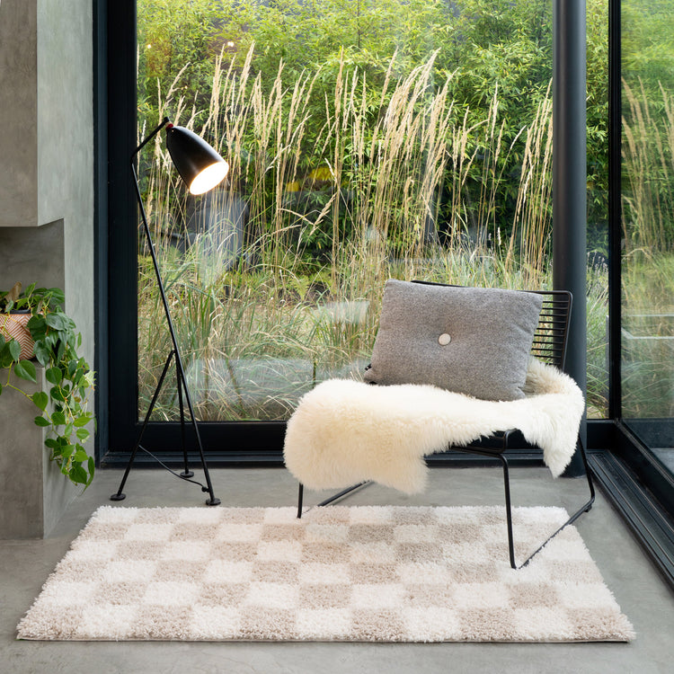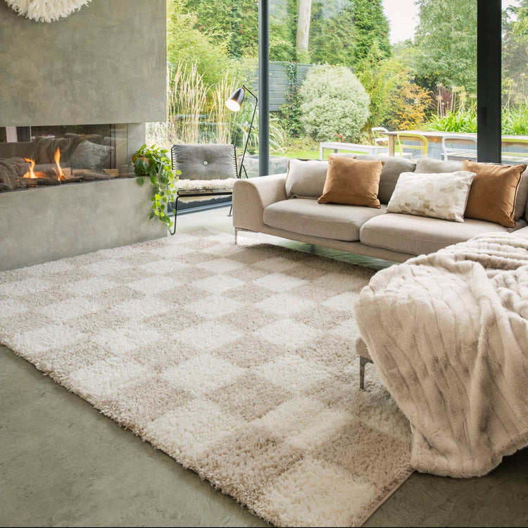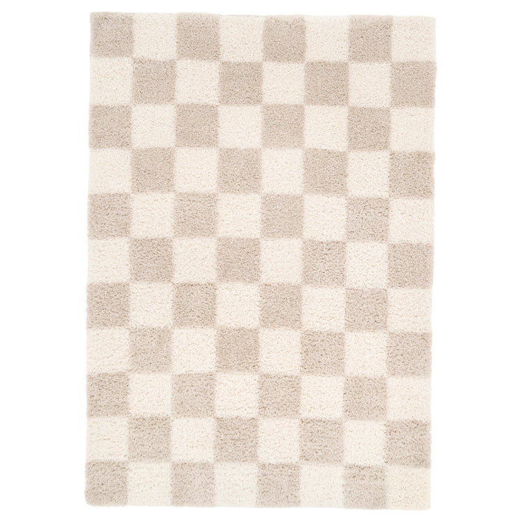 Soft Beige Checkerboard Shaggy Rug - Konnie