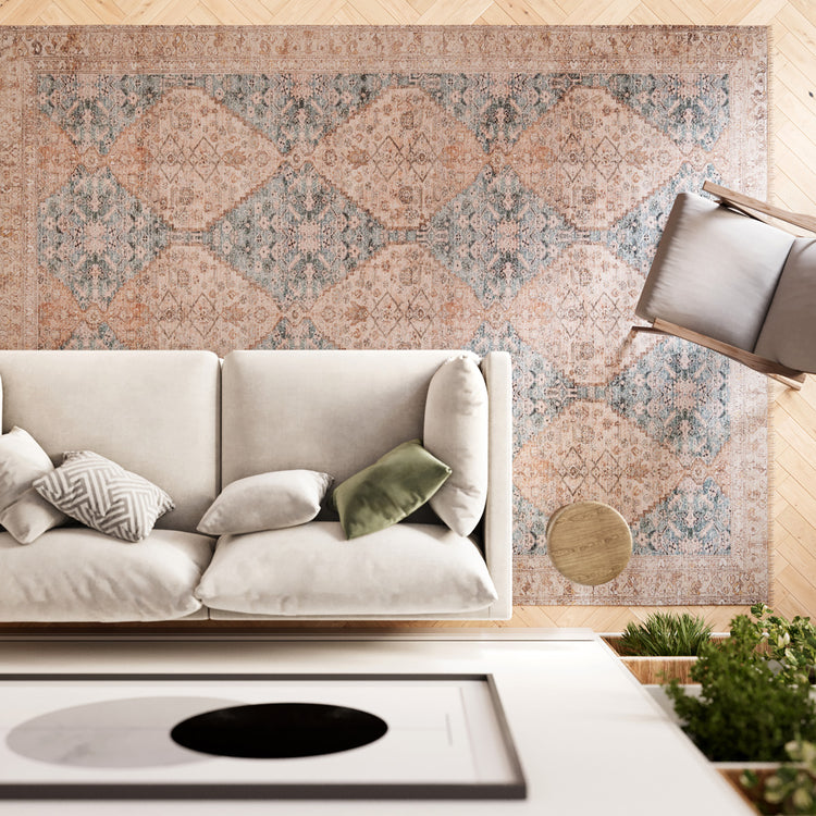 Vintage Blue Diamond Rug - Genevieve