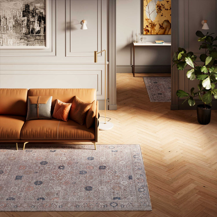 Flatwoven Washable Vintage Distressed Floral Area Rug - Macie