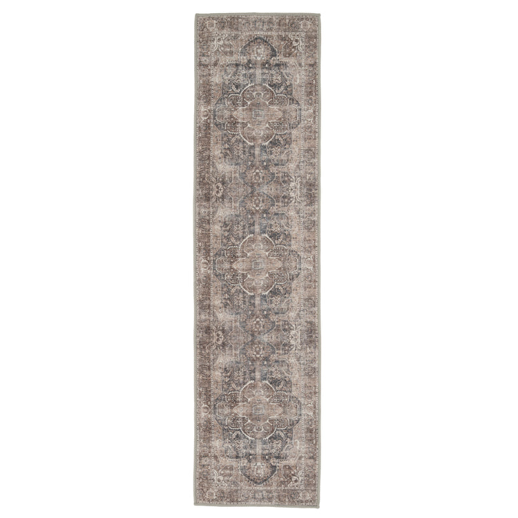 Meet Lois. A timeless treasure with a traditional design in brown and greige tones featuring an ornate central medallion and a beautifully detailed border that echoes heritage charm. Perfect for homes embracing vintage revival, farmhouse charm or rustic refinement, this runner rug adds warmth and timeless style to living rooms, bedrooms or hallway moments. She's perfect for dropping jam on during toast time, just throw your rug in the washing machine!