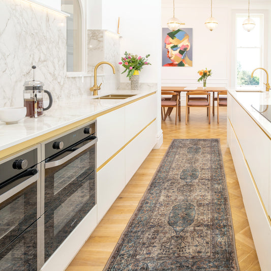 Soft Washable Vintage Greige Runner - Elsie