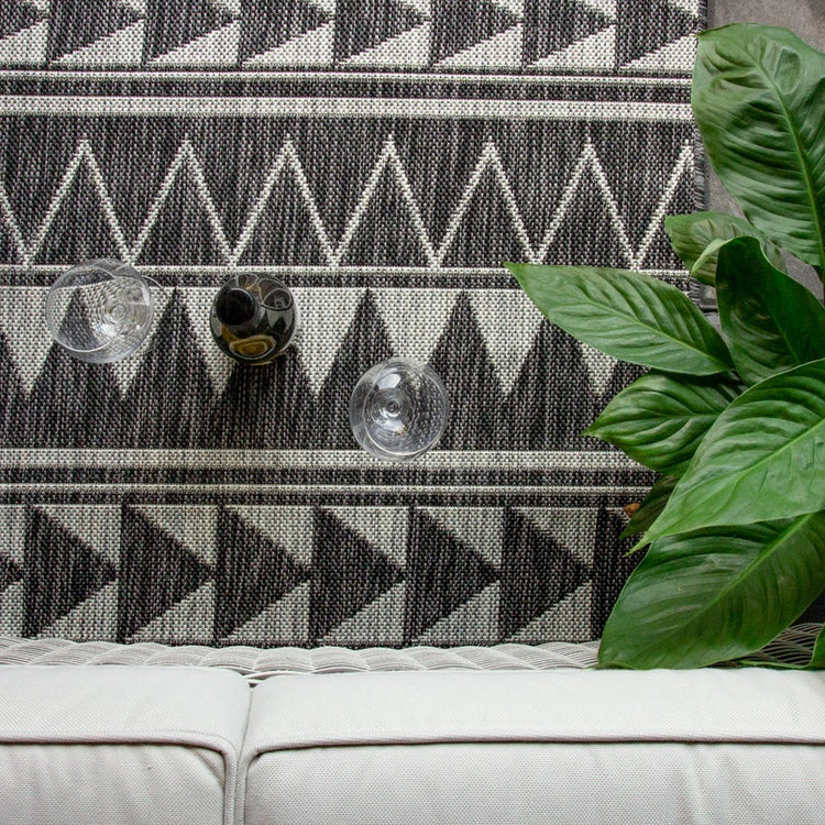 Charcoal Tribal Print Indoor Outdoor Rug - Callow