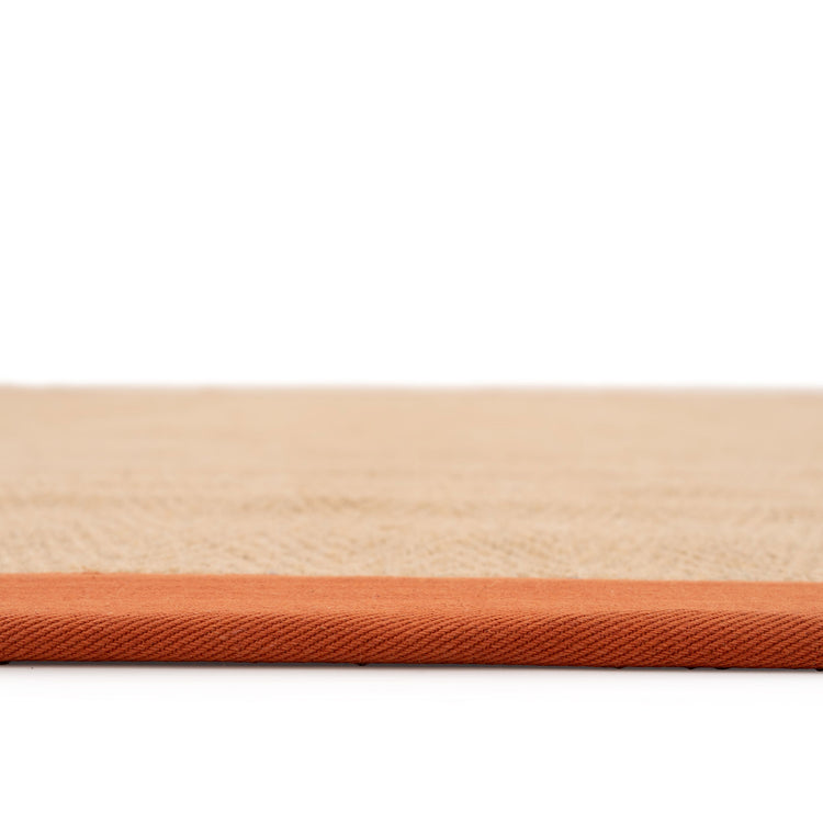 Juliette rust radiates warmth and rustic charm featuring a soft terracotta cotton border and natural woven jute.  The soft rust colour adds a subtle pop of colour bringing the warmth and earthy tones together for a true rustic and organic feel to your home.