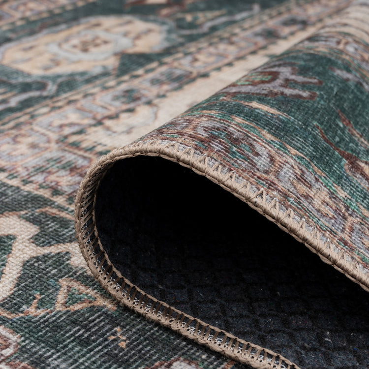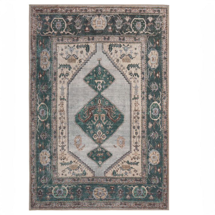 Introducing Anton, an exquisite green bordered area rug crafted from high-quality, washable fibers and designed to add a touch of sophistication and strength to any space. Perfectly balancing gentle lines with a commanding presence, Anton promises to lend tasteful elegance and sophistication to any home.
