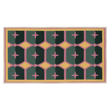 Washable Green Geometric Tile Doormat - Fusion