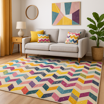 Soft Abstract Marbled Multicolour Living Room Rug - Matki