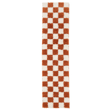 Soft Rust Checkerboard Shaggy Runner - Gigi