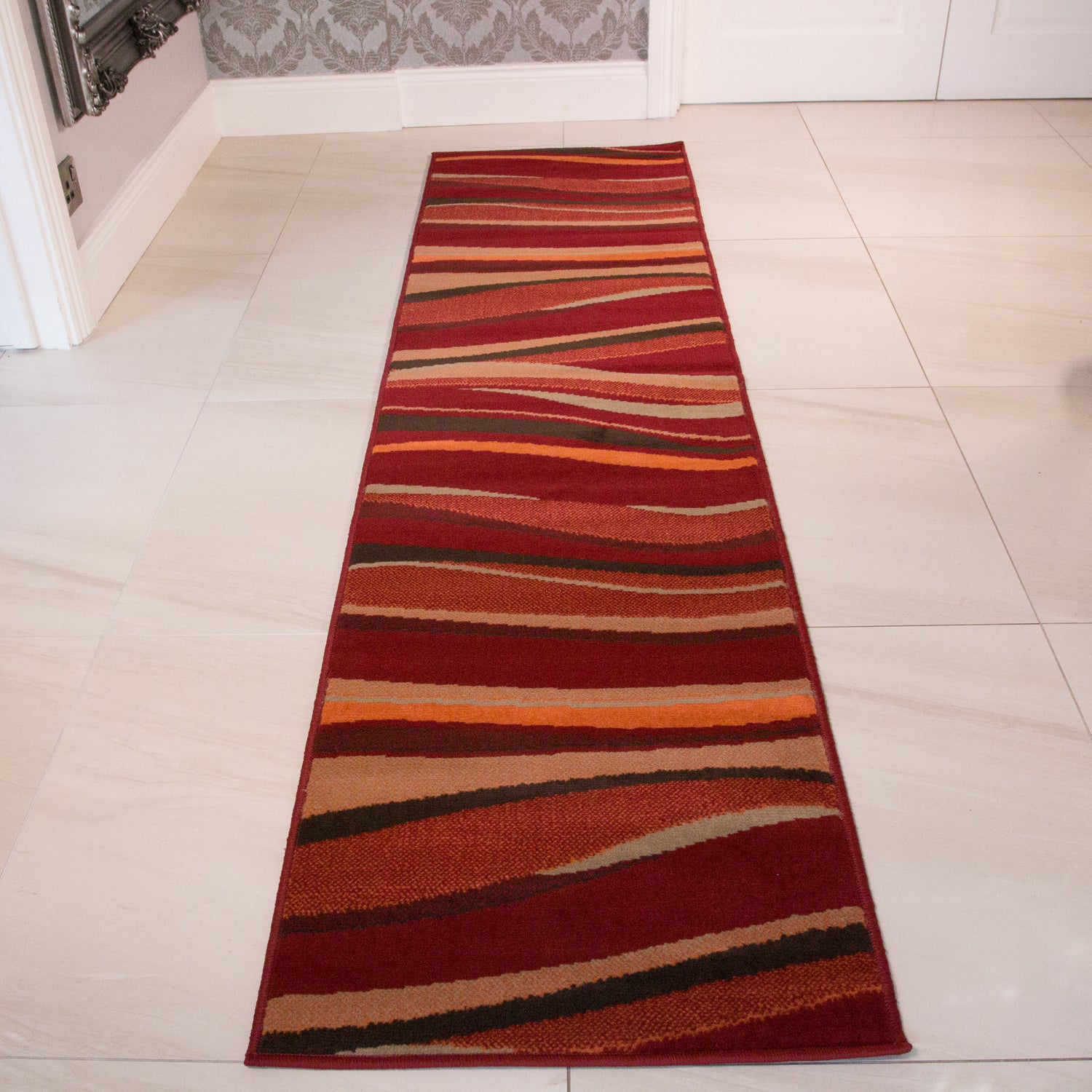 Red Waves Living Room Rug