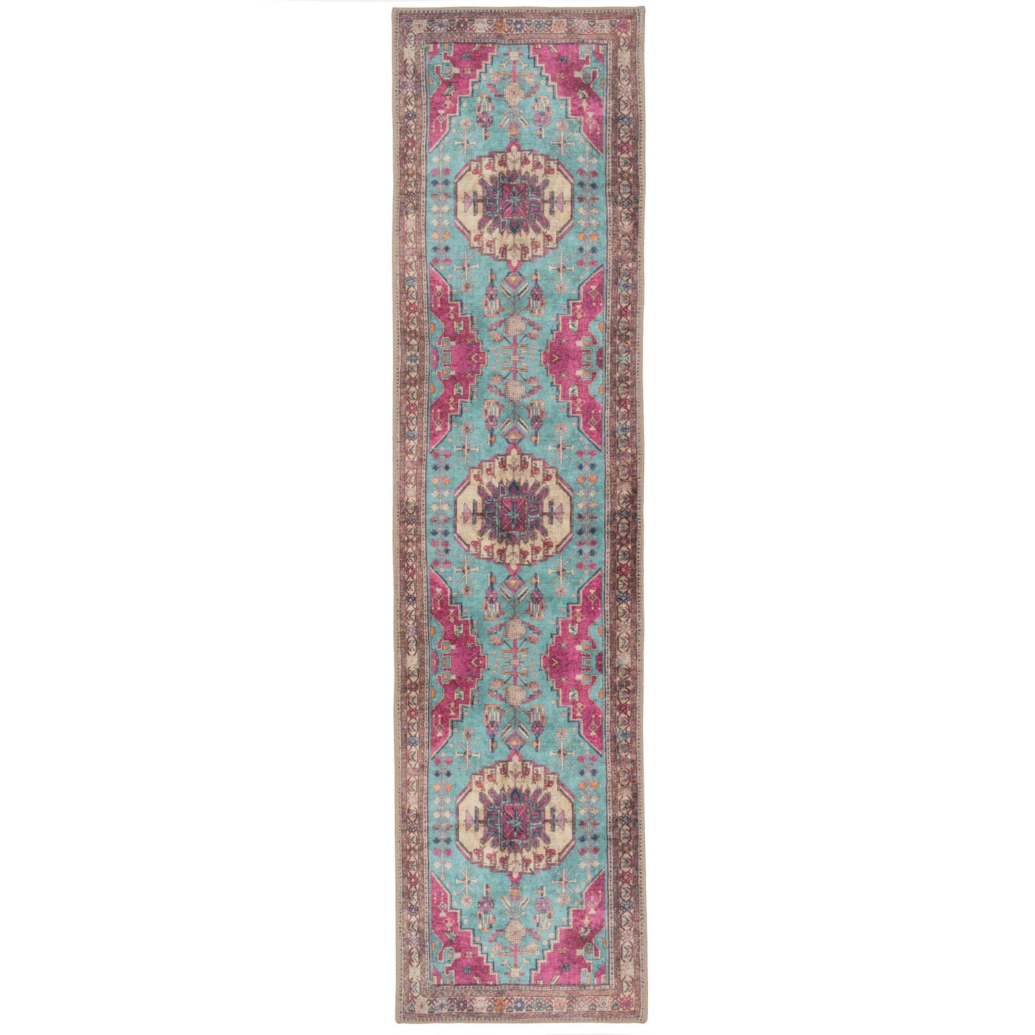 Flatwoven Washable Vibrant Teal Pink Boho Runner - Clarissa