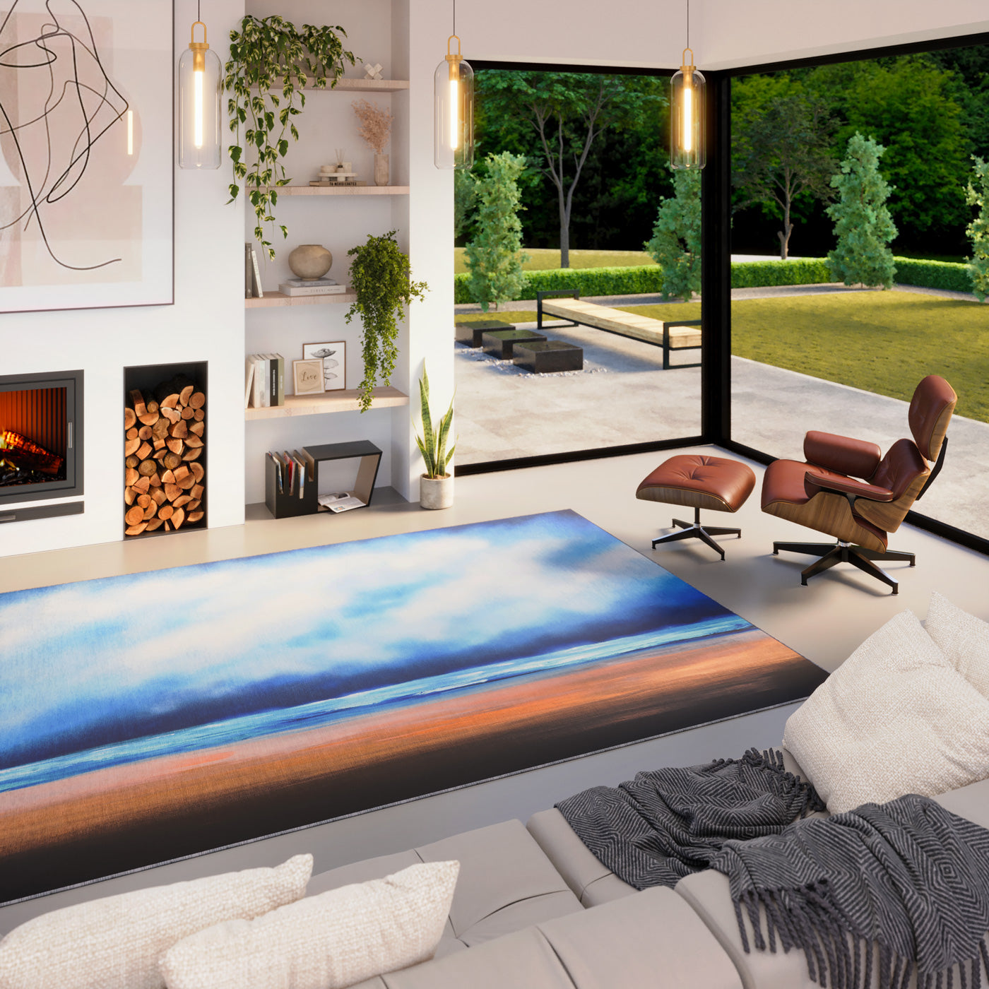 Perfect for minimalist or coastal home with beiges, creams and whites,  add soft wooden furniture to echo the sandy colours in this design.