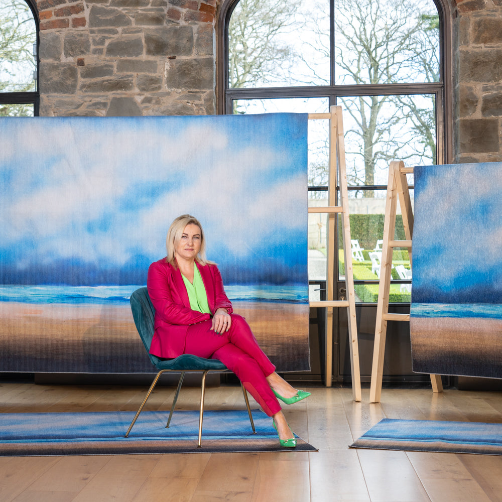 The breathe rug design is inspired by those beauty of the Irish coastal village of Rostrevor Co. Down where Jacqueline spends time with her young family playing on the sandy shores.  Inspired by those moments when you just need to close your eyes, stop and savor those precious memories and breathe