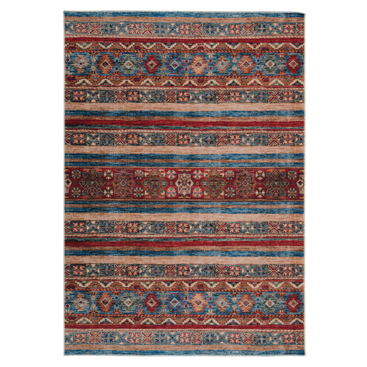 Inspired by traditional Gabbeh symbolism, her linear motif dances across earthy reds, cool blues and sun-baked terracottas. This rugs soft looped texture balances heritage with a contemporary twist. Perfect for boho corners, country nooks and Scandi-inspired sanctuaries alike, machine washable Alia tells a story and washes up well after.