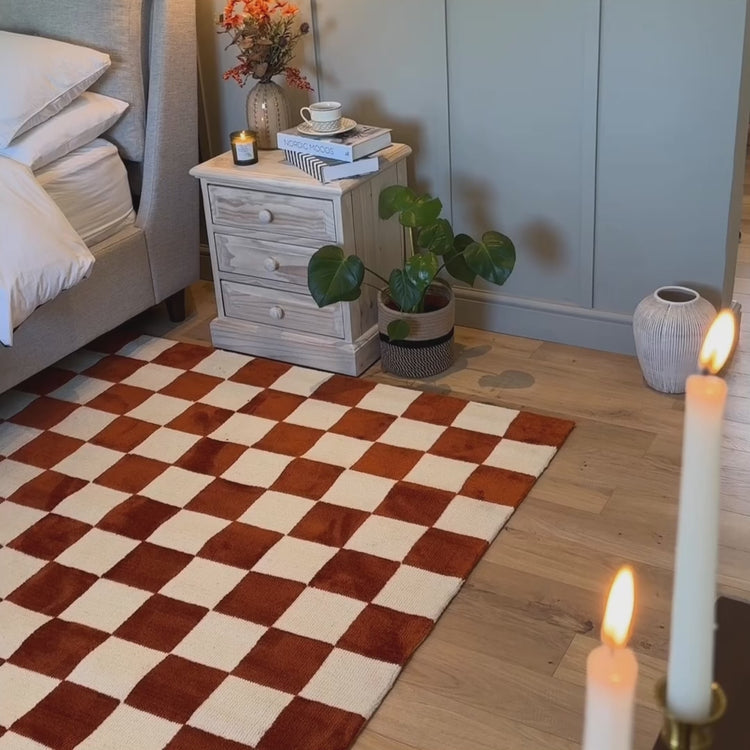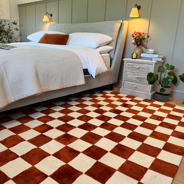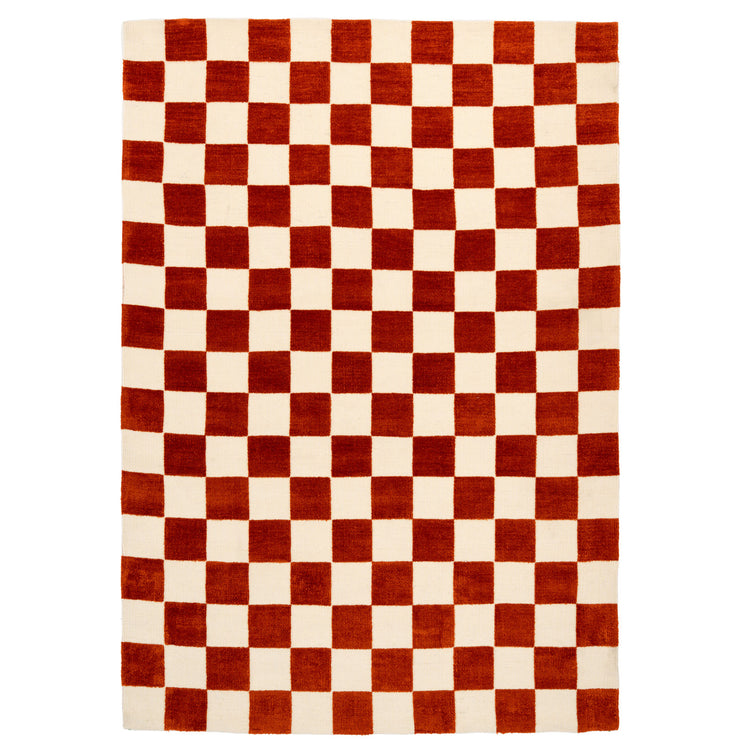 Burnt Orange Retro Checkerboard Rug - Maze Rust