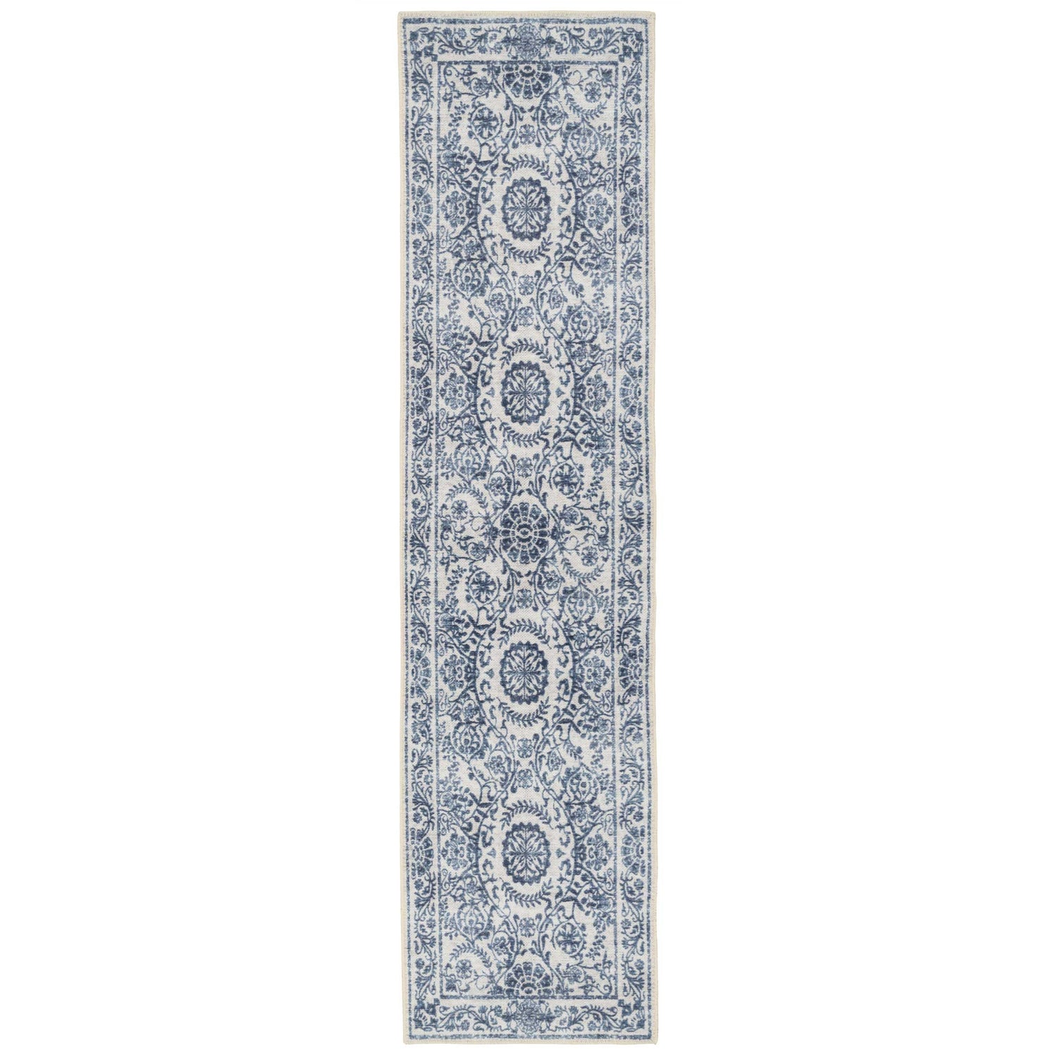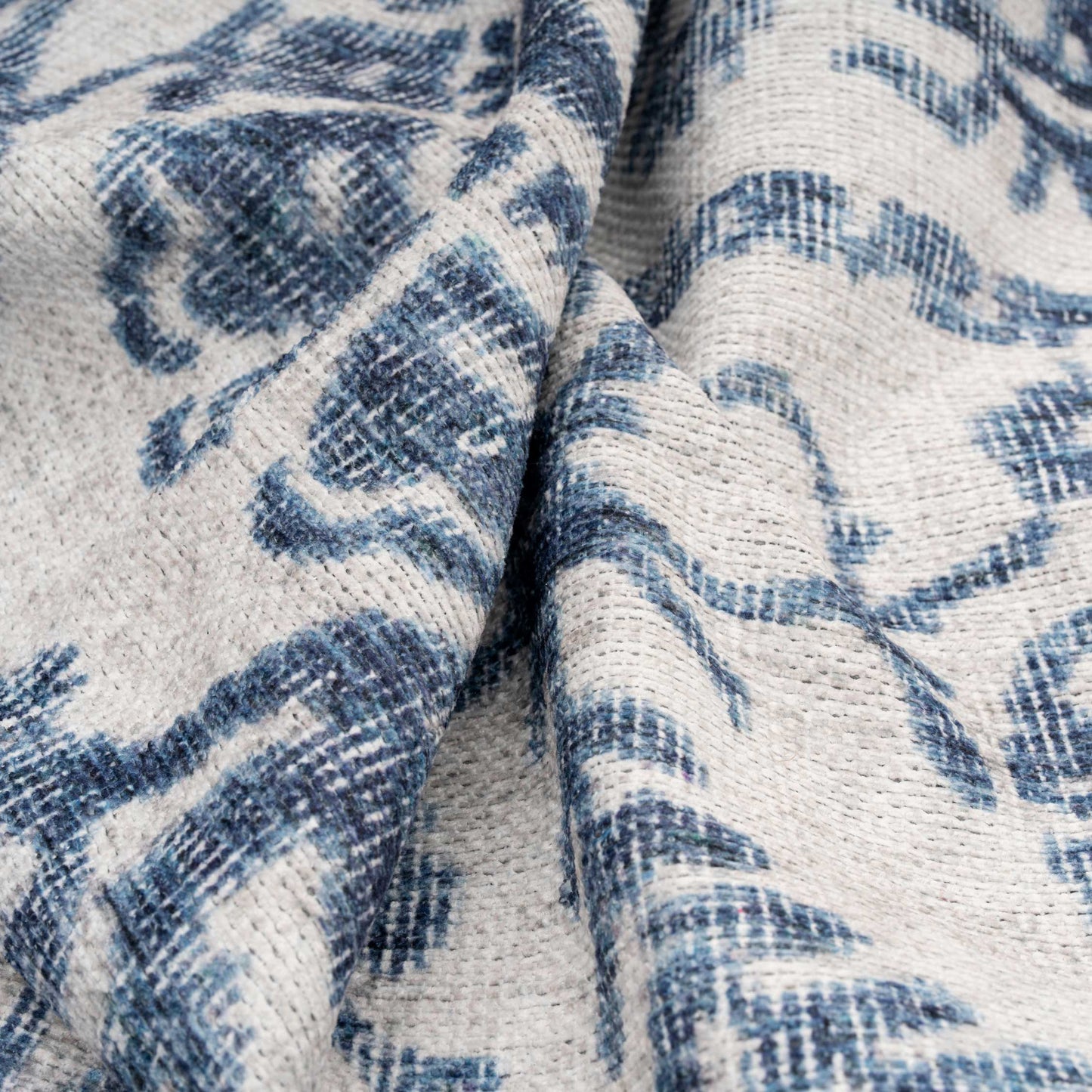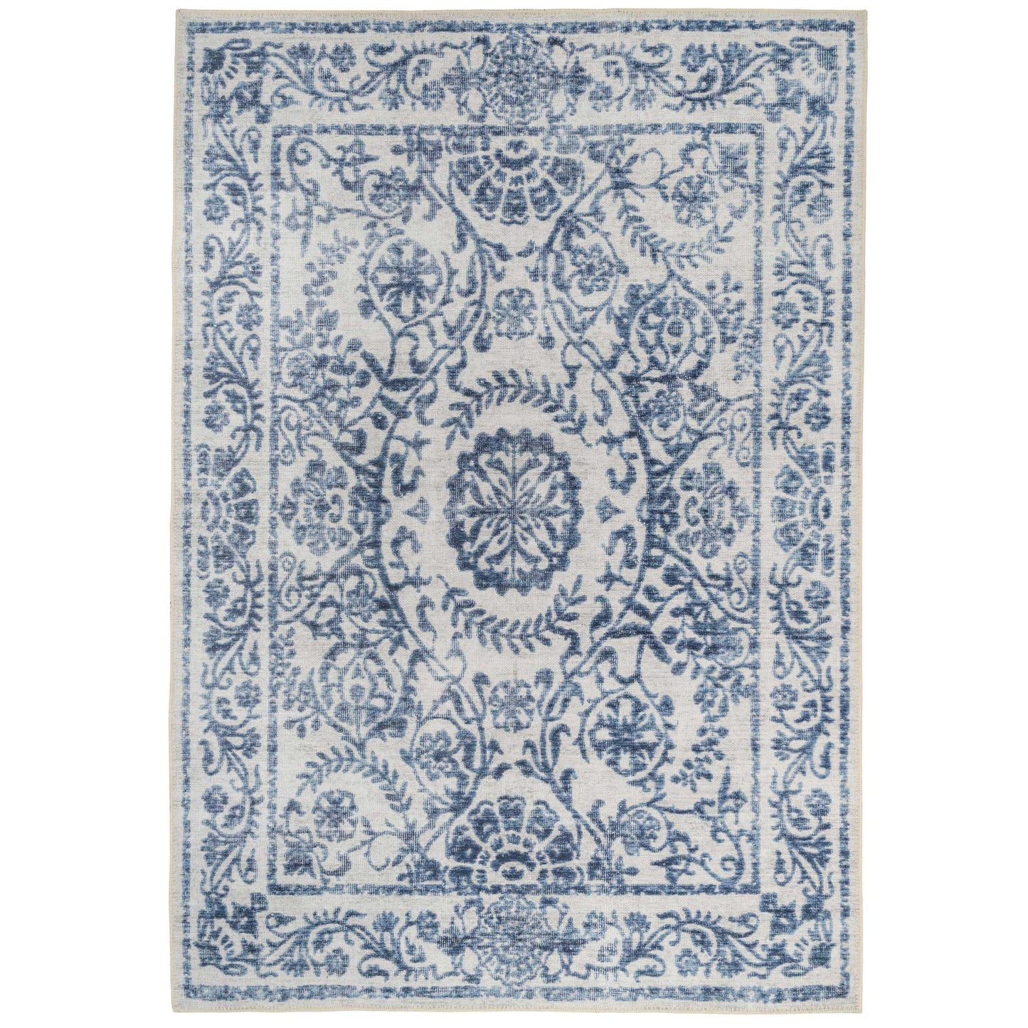 Flatwoven Washable Distressed Blue Damask Rug - Bala