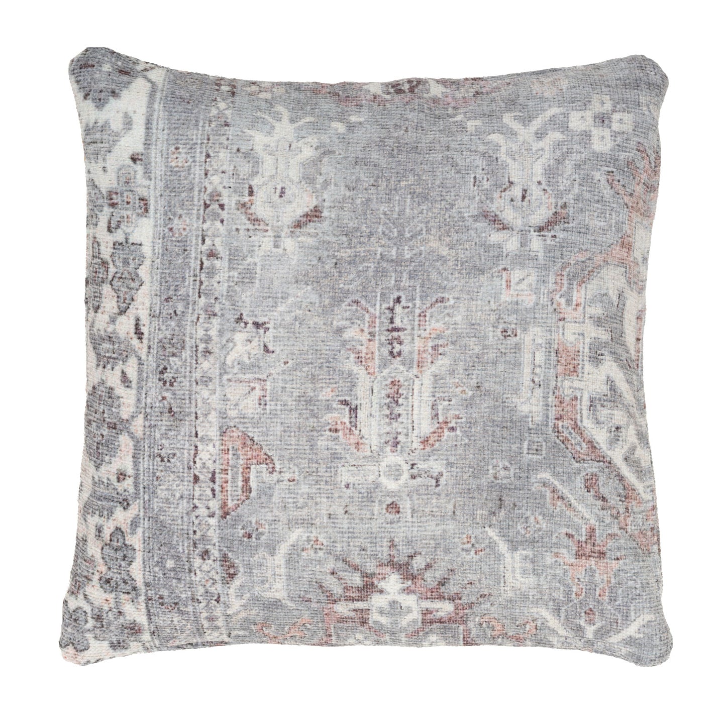 Flatwoven Washable Distressed Grey Bordered Rug - Grand