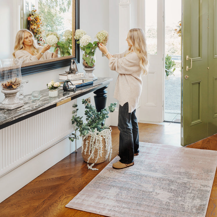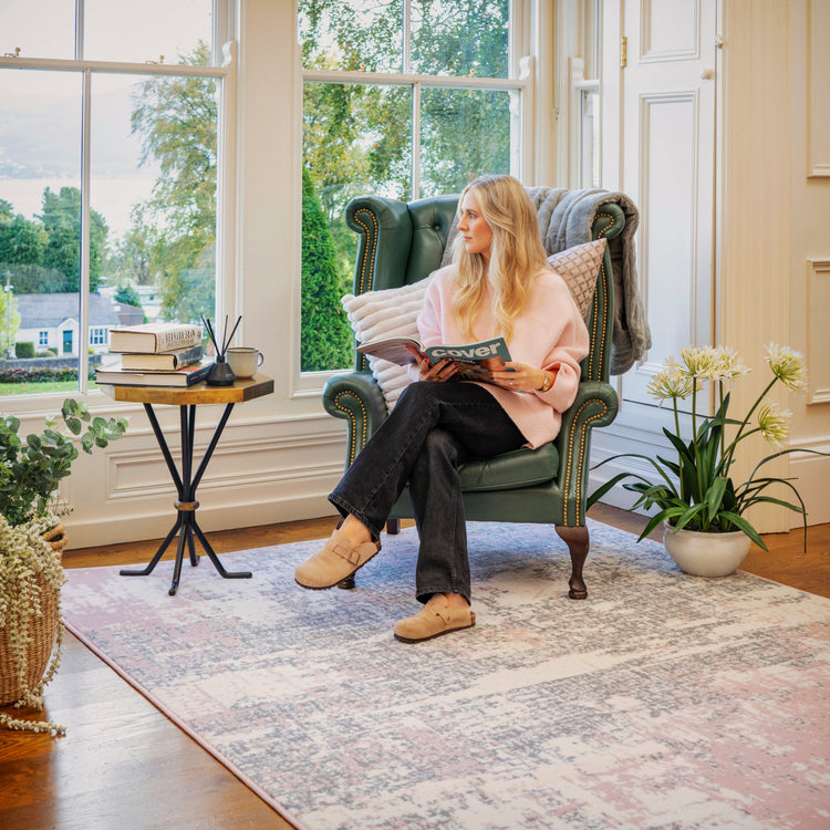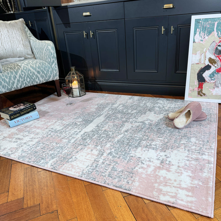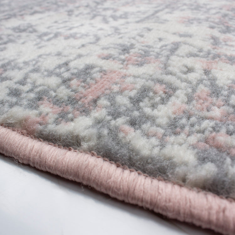 Pink Grey Distressed Worn Look Living Room Rug - Milan