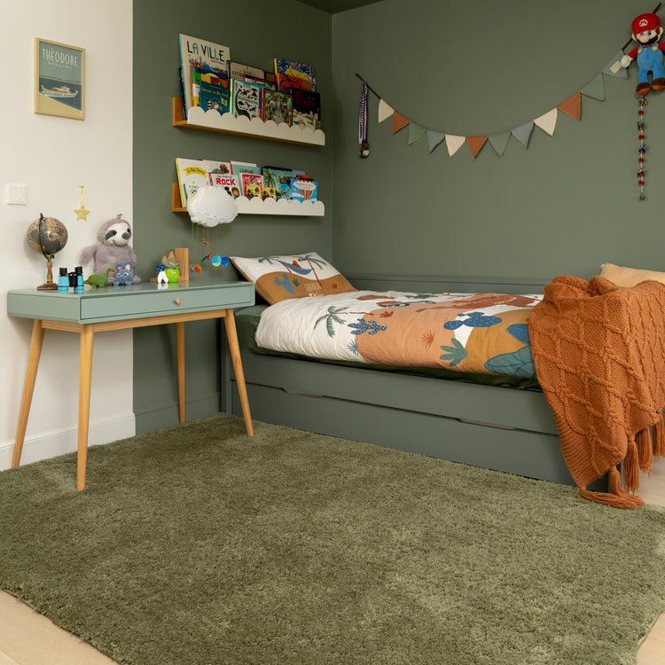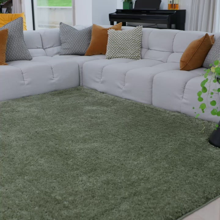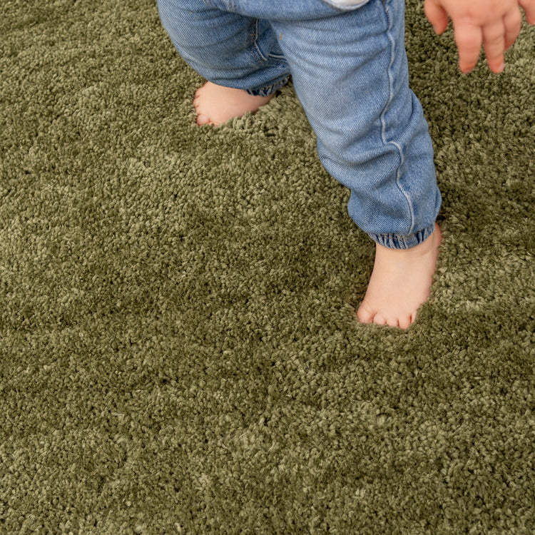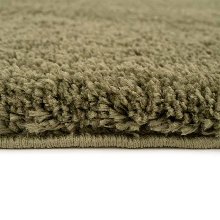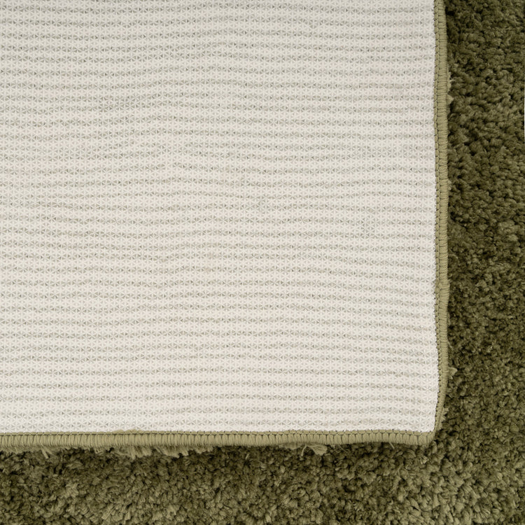 Its soft, Olive green pile brings a breath of tranquility to your space, infusing it with fresh, grounding comfort.