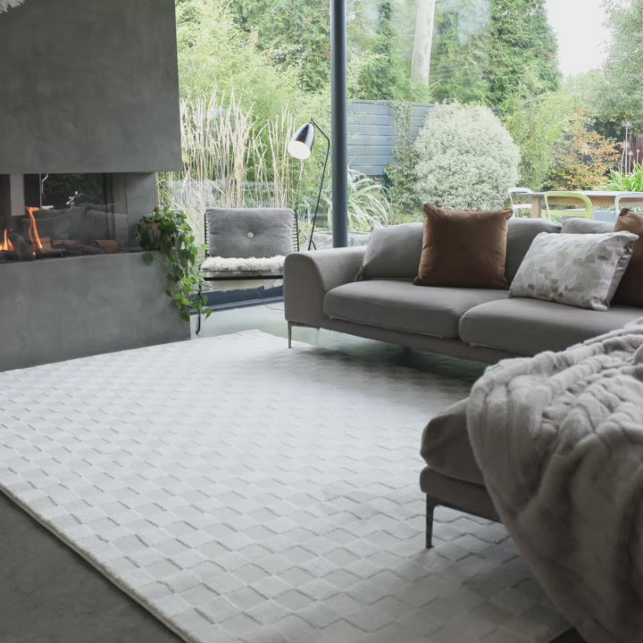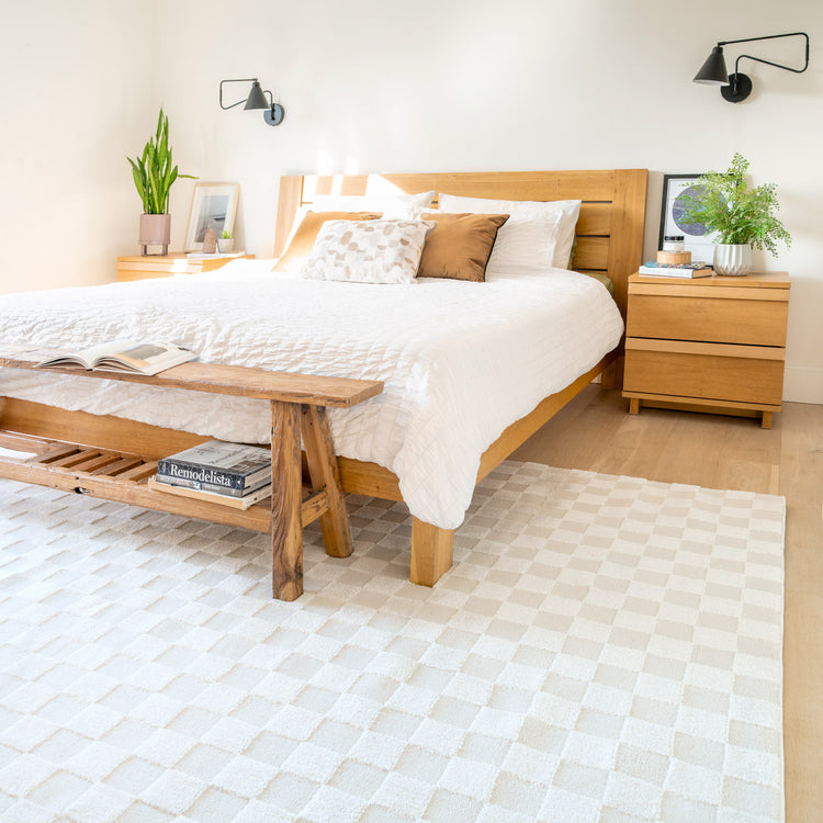Soft Natural Cream Retro Checkerboard Rug - Liv