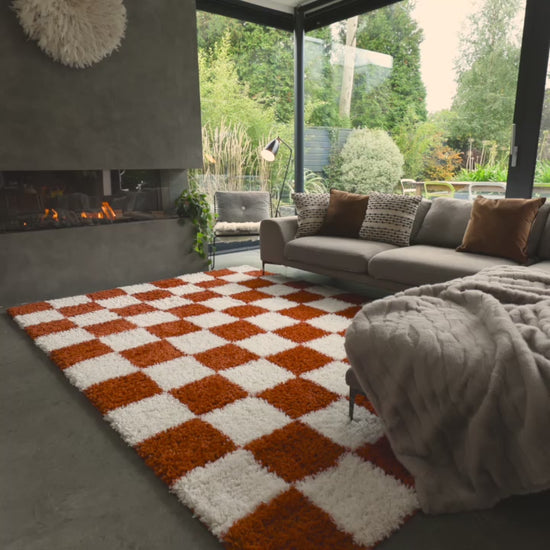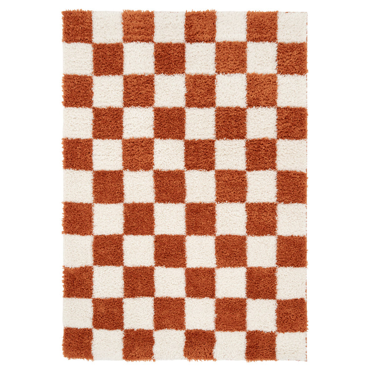 Soft Rust Checkerboard Shaggy Rug - Gigi
