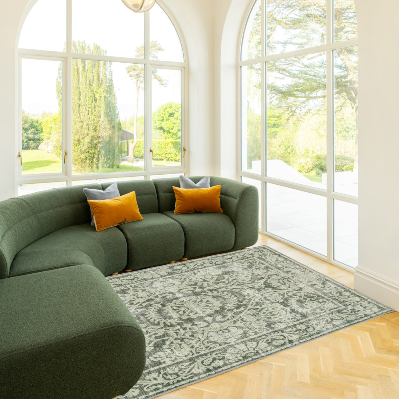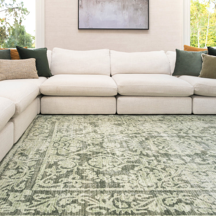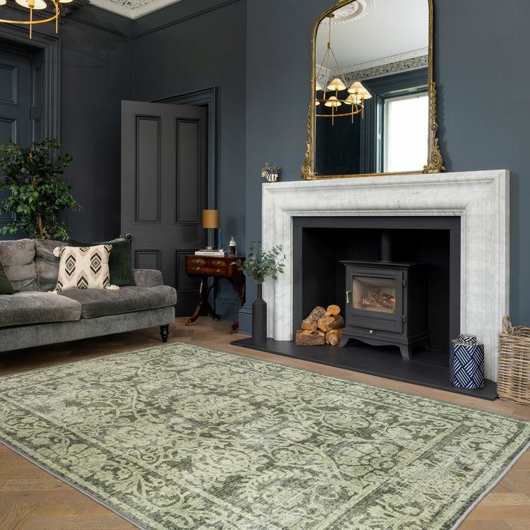 Pippa is a breath of fresh air in soft sage green. A reimagining of our beloved Bala Blue, this rug brings the same graceful floral motifs and elegant vine detailing, only this time with a soothing green twist. Inspired by timeless garden elegance and stately serenity.