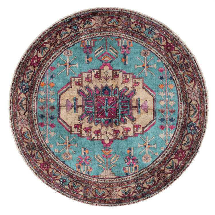 Flatwoven Washable Vibrant Teal Pink Distressed Boho Rug - Clarissa