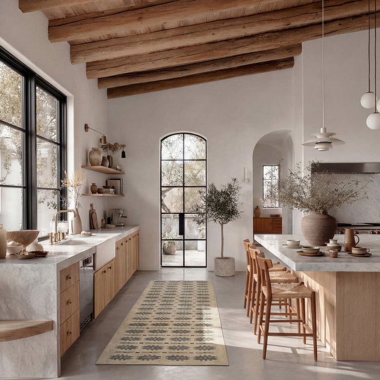 Zev keeps things grounded, in the best possible way. The runner rugs jute infused rug base blends warm neutral tones with a natural, rustic texture, while the repeat Aztec symbols in smoke grey bring just enough edge. Rustic and refined, Zev is proof that simple can still make a serious statement. Ideal for boho, Scandi or ranch inspired living, she slots in with quiet confidence. And yes, Zev is fully machine washable because style should never come with stress.
