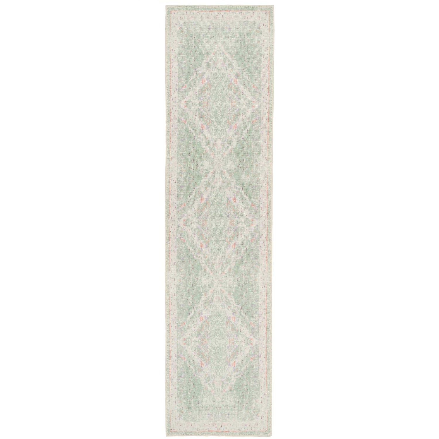 Flatwoven Washable Green Medallion Runner - Lottie