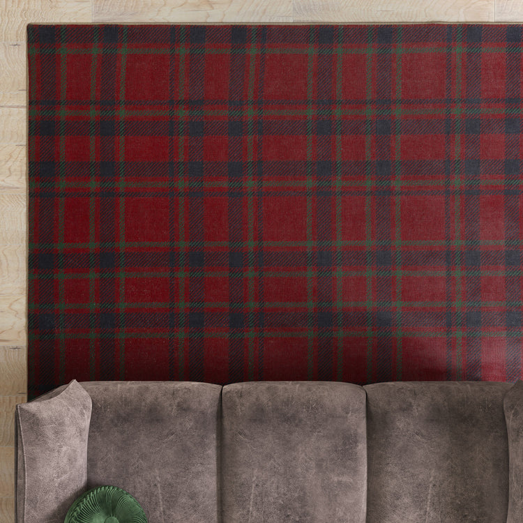Washable Red Tartan Heritage Rug - Finn