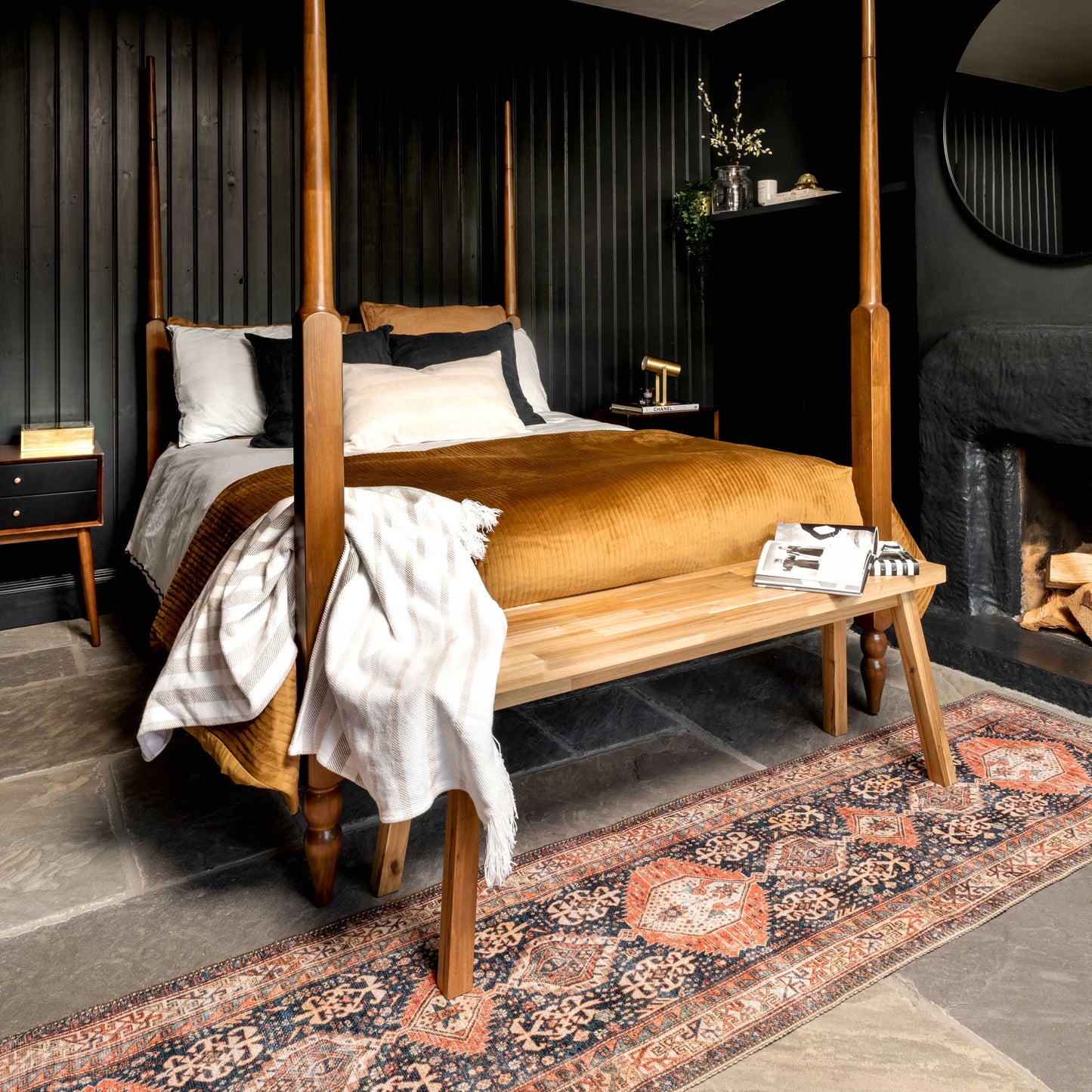 Perla is a bold bohemian filled with subtle intricacies and nods to the past. Reminiscent of an heirloom Kazak rug, the contrasting colours of Perla traditionally represented one’s status within their tribe. The traditional symbols of animals and polygons are created using straight lines due to traditional Afghan weaving.