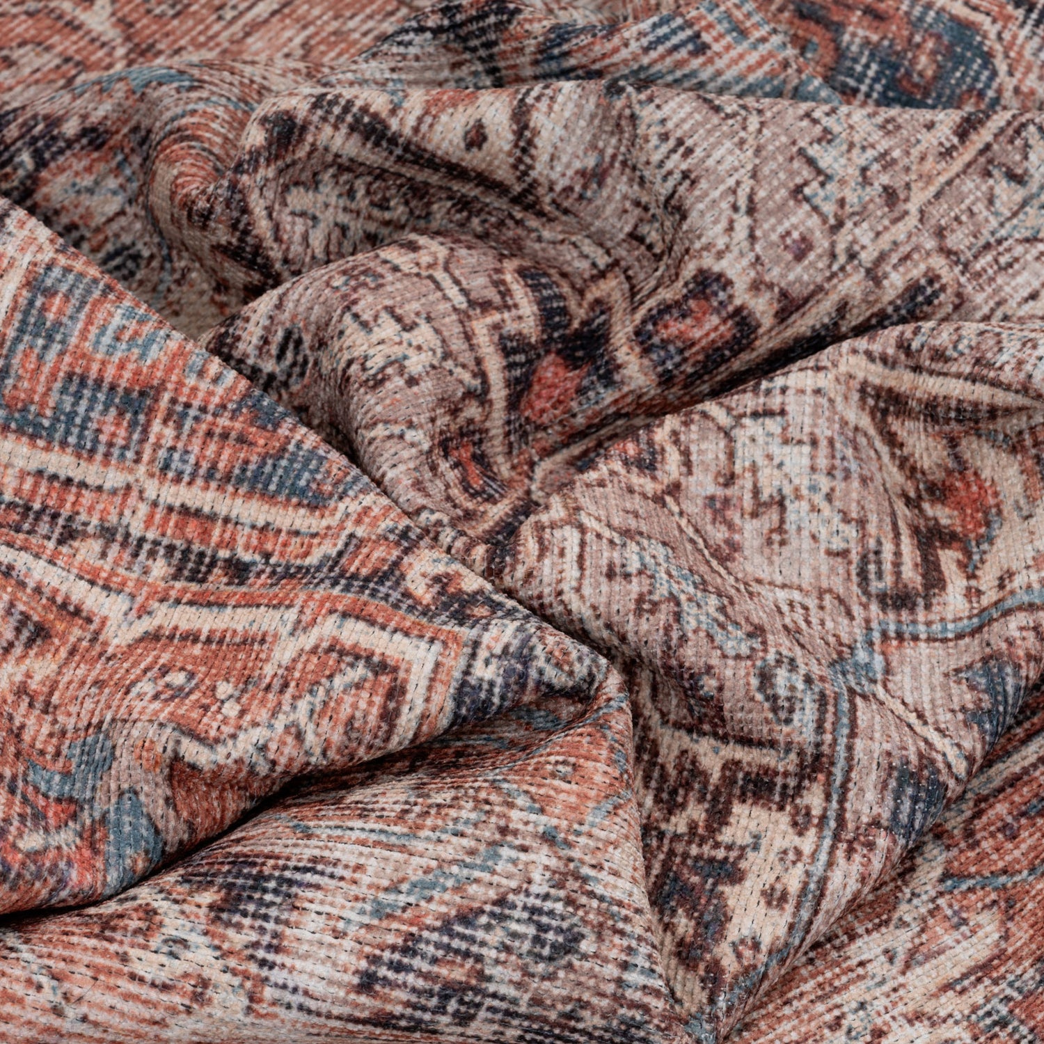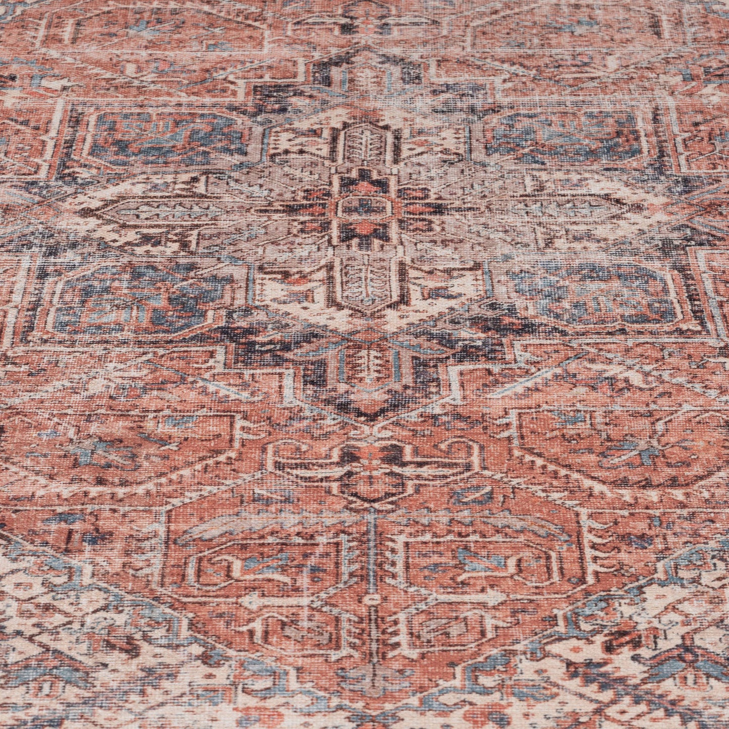 Introducing Neeve, a warm and inviting washable terracotta medallion area rug that brings effortless elegance and timeless beauty to your space. Crafted from a rich palette of subtle hues, Neeve radiates a comforting warmth and reflects the glow of a well-loved home.